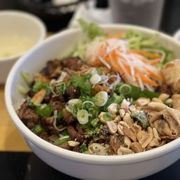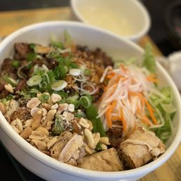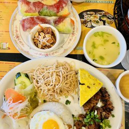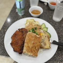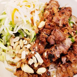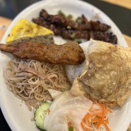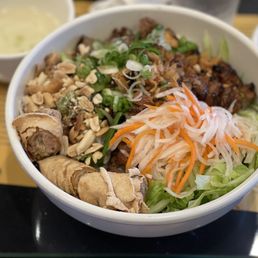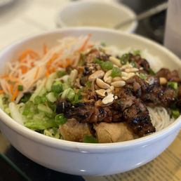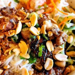 Had the food here with my family today and it was so good. What drew me in was the smell of Vietnamese pork chops grilling coming out as smoke through their roof. I was exiting Costco and could smell it through my car. And I looked to see where it was coming from. You can see a smoke stack coming out from the top of the restaurant. Kinda took me back to the streets of Vietnam. The service was quick and the portions were huge. I would stray away from the Pho but the rice dishes are on point. I order the combination plate with pork chop, fried bean curd fish cake, shrimp meat ball on sugar cane, shredded pork skin, and egg meat loaf. Meats were all tender with lots of flavor. The smokiness from the meat and the nice char gave it extra flavor. You can tell they grilled the meats over an open flame. Definitely coming back here. Only complaint is they forgot to give us water and our drinks until after we were finish eating. I forgot to take pictures because I was so hungry.